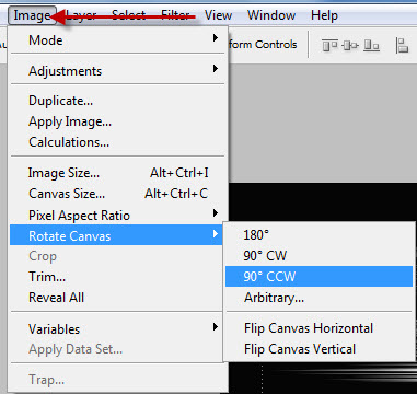 এরপর Image অপশন থেকে Rotate Canvas >> 90 CW Select করতে হবে ।