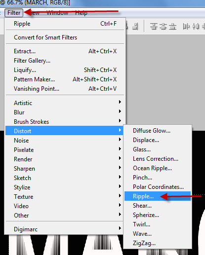 এরপর আবার Fillter মেনু থেকে Distort >> Ripple select করতে হবে