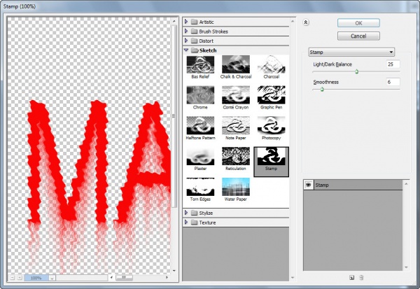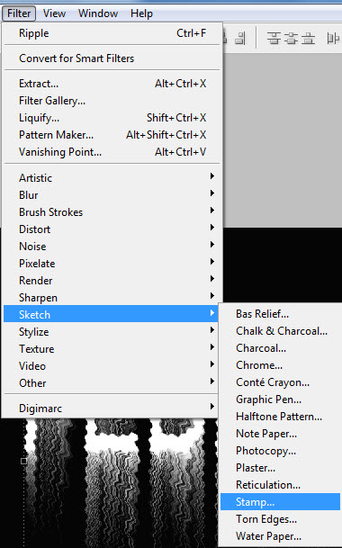 এরপর Filter মেনু থেকে Sketch >> Stamp এ ক্লিক করতে হবে