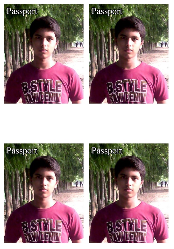 একটা 3r সাইজের কাগজে ৪টা পাসপোর্ট সাইজের ছবি ধরে। তার মানে আপনি যদি আগে থেকে ক্যামেরায় তুলে রাখা কোন ছবি পাসপোর্ট আকারে প্রিন্ট করাতে চান তাহলে ৪টা ছবি আপনি মাত্র ৬ টাকায় প্রিন্ট করাতে পারবেন।