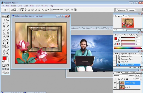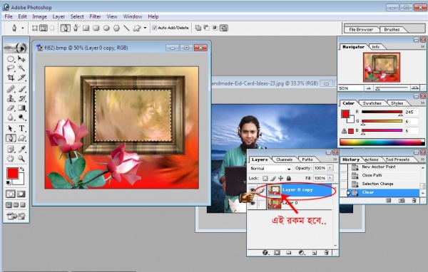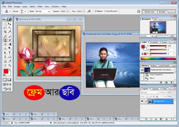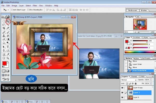 তারপর ফ্রেম আর ছবি ফটোশপে ওপেন করুন নিচের মত করে।