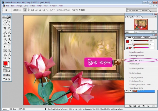 এবার লেয়ার প্যালেট এর Duplicate layer বাটনে ক্লিক করে ১টি ডুপ্লিকেট লেয়ার নিয়ে নিন ।