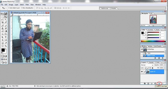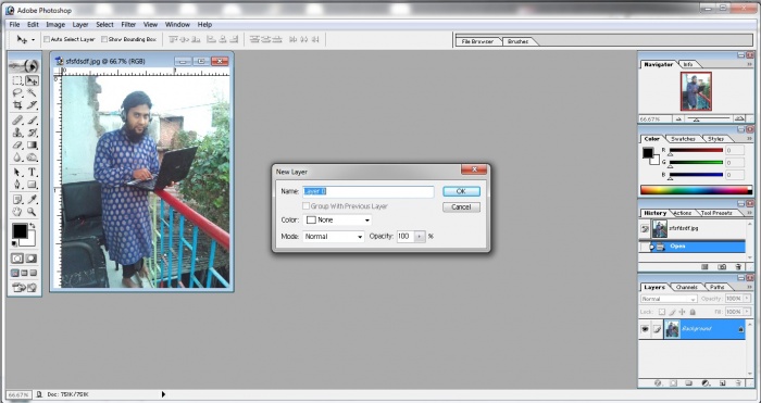 এবার Layer এ ক্লিক করে লেয়ার এর লক টি খুলে নিচের মত করে Create new layer ক্লিক করে ১টি লেয়ার নিয়ে নিন একদম সোজা।