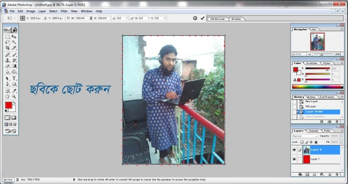 আবার কি-বোর্ড থেকে CTRL+T প্রেস করে ছবিকে ছোট করে নিন।