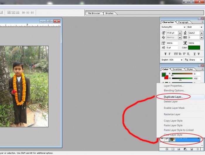 এবার ছবির লেয়ার এর উপর মাউসের রাইট বাটন ক্লিক করে ১টি ডুপ্লিকেট লেয়ার নিন।