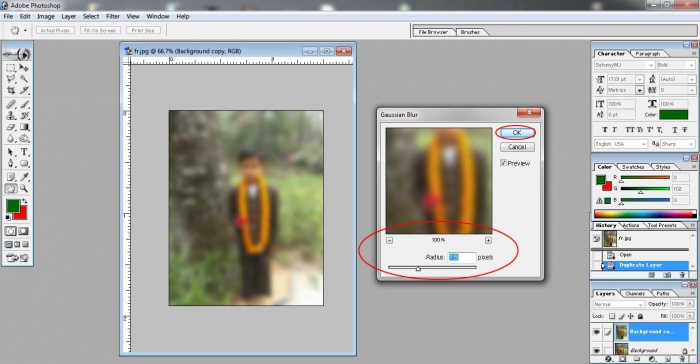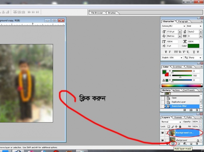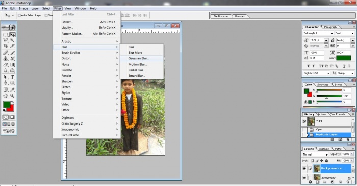 এখন মেনুবার থেকে Filter>Blur>Gaussian Blur এ ক্লিক করুন।