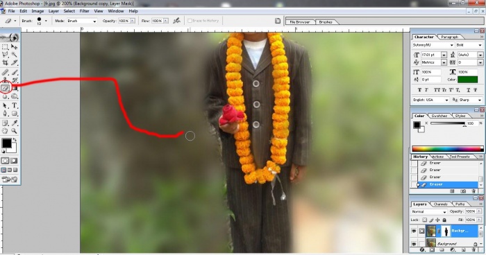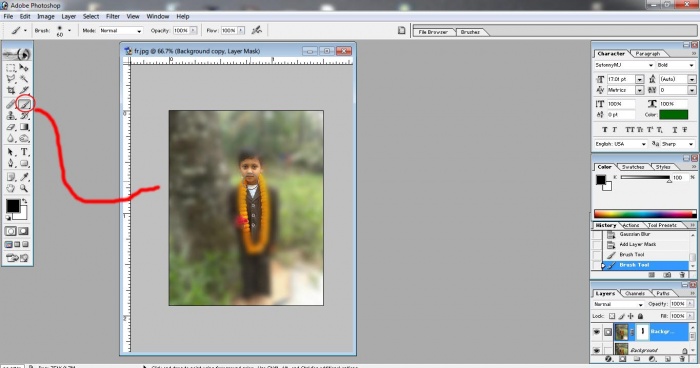 এবার Tool Bar থেকে Brush টুল সিলেক্ট করে আস্তে আস্তে ছবি ব্রাশ করুন। ব্রাকগ্রাউন্ড ছাড়া।