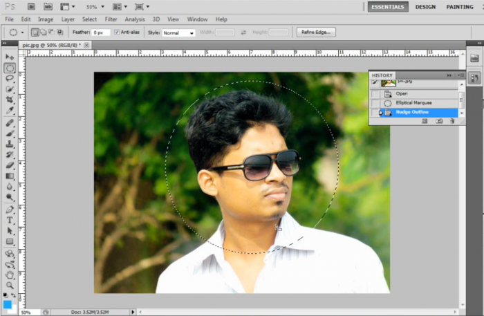 ১ম ধাপঃ পিকচার open করে Elliptical Marquee Tool দিয়ে আপনি কতটুকু আইকন বানাবেন তা সিলেক্ট করুন।