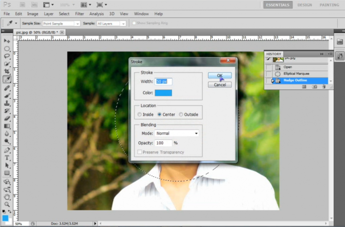 ২য় ধাপঃ Right Click করে Stroke দিয়েছি 50 PX এবং কালার blue । আপনি আপনার পছন্দ অনুযায়ী PX এবং কালার দিতে পারেন।