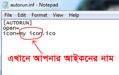 আর এটি সেভ করুন autorun.inf ফরমেট এ