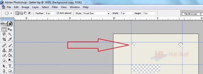 ধাপ-৮ এখন আপনার Rectangle এর উপর দিকে দুটি ছিদ্র তৈরি করুন। ছিদ্র করার জন্য Elliptical marquee tool select করুন অথবা keyboard থেকে M চাপুন। সেট করুন এবং Width 7 pixels এবং Height 7 pixels সেট করুন। অথবা (আপনার ইচ্ছা অনুযায়ী) এবং পরে তা মুছে ফেলুন।