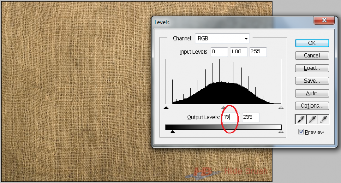 এখনCtrl + L চাপুন অথবা Image>Adjustments>Levels এ যান এবং output level 15 এ সেট করে OK চাপুন।