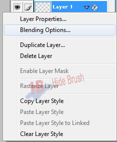 এখন আমরা Layer 1 এর একটি ছায়া (shado) তৈরি করব।তৈরি করার জন্য Layer 1 এর উপর right click করে তারপর Blending Option এচাপুন।