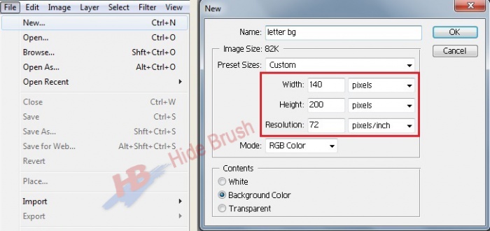 একটি 140 pixels Width এবং 200 pixels Height এবং Resolution 72 pixels এর নতুন Document খুলুন। নতুন Document খুলতে File>New তে যান অথবা আপনার keyboard থেকে Ctrl+N চাপুন এবং OK চাপুন। একটি নতুন Document খুলবে