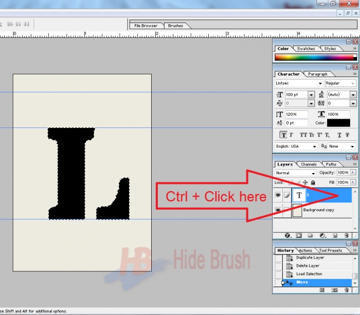 এখন Ctrl চেপে ধরে Text Layer এর উপর ক্লিক করে L অক্ষরটি select করুন।
