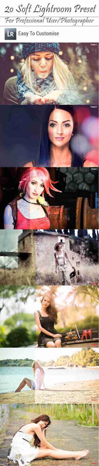 20 Soft Lightroom Preset :- Lightroom Presets contains perfect high quality effect and image will be looks better and beautiful.These presets were tested and adjusted to give good results for a wide variety of images