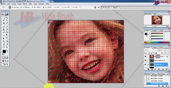 সম্পূর্ন select করার পর Ctrl+T চেপে selection কে ৪৫ ডিগ্রী কোনে ঘুরিয়ে দিন।