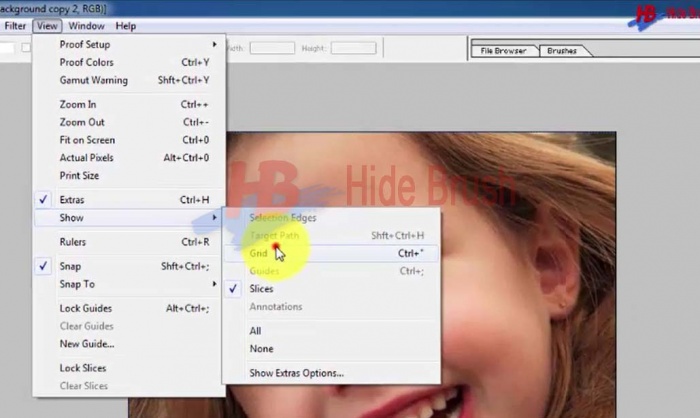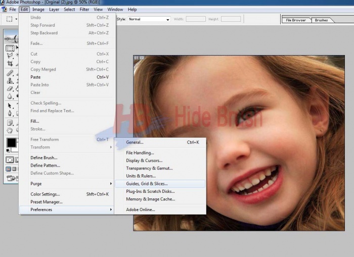 Edit>Preferences>Guides,Grid & Slices.. এ যান।