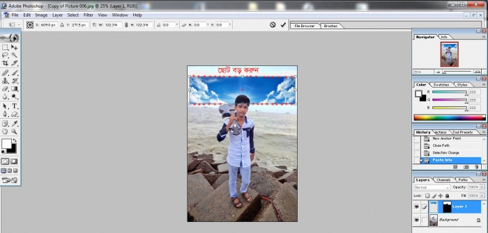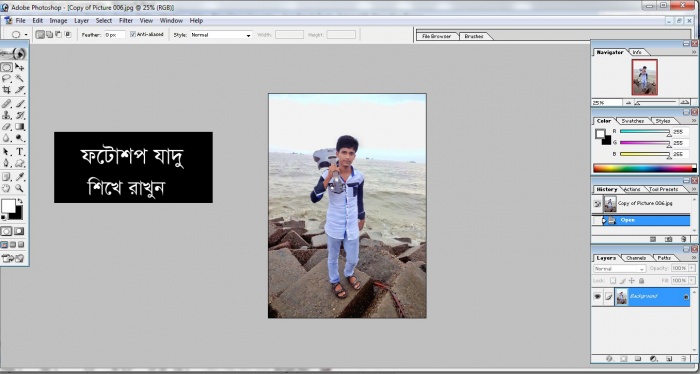 ফটোশপের যে কত গুন সেটা যারা জানে আর বোঝে তারাই ভাল বলতে পারবে। যদিও আমি বেশি কিছু জানিনা তার পরও যা জানি সেটা আপনাদের মাঝে শেয়ার করতে চেষ্টা করি। ফটোশপের মাধ্যমে আমরা নানাবিধ কাজ করে থাকি। অনেক সময় যে কোন ছবির পিছনের অংশ চেঞ্জ করতে হয়, আমার এক ভাই চিটিগাং গেল এবং নিচের ছবিটি তুলে আনল, আর আমি দেখলাম ছবির পিছনের অংশ তেমন ভাল না, আকাশ টা ঘোল হয়েছে, মনে মনে ছোট ভাইকে বললাম ছবিটা আমাকে Shareit দিয়ে দাও, বাকিটা আমি করে দেখাচ্ছি। সে আমাকে ছবিটা দিল আর আমি ফাইনাল কাজ করে দিলাম অনেক খুশি হল।