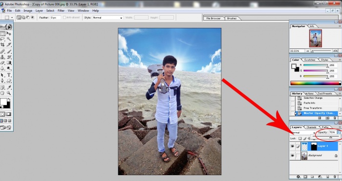 তারপর আকাশটা যদি বেশি গাড়ো মনে হয়, তাহলে Opacity কমিয়ে দিন।