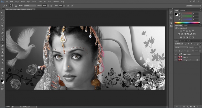 ১. প্রথমে ফটোশপে যে কোন একটি ফটো ওপেন করুন এবং ctrl + j- চেপে এর একটি Duplicate copy- তৈরী করুন।নীচের ছবিটি দেখুন। (নায়িকার ছবিটি আমি গুগুল থেকে Collection করেছি এবং ছবিটি কেটে নিয়ে ব্যাকগ্রাউন্ড-এর উপরে বসিয়েছি)।