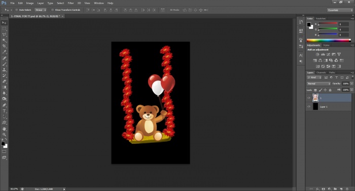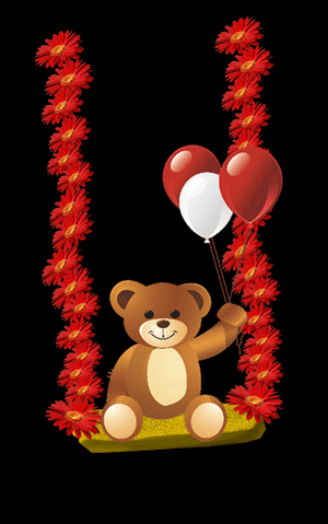 ১. প্রথমেই, ফটোশপ খুলে একটি ৫০০ x ৯০০- pixel-এর ৩০০- resulation-এর কালো ব্যাকগ্রাউন্ড-এর নিউ লেয়ার নিন এবং আমি যে ভাবে সাজিয়েছি ঠিক সেই ভাবে একটি ফুল নিয়ে copy-paste- করে করে একটি দোলনার দড়ির যায়গা দু'টি বানান এবং সব ফুল গুলিকে সিলেক্ট করে মার্জ করে দিন ও দোলনাটির বসার যায়গাটি ব্রাশ দিয়ে রঙ করে কাঠের মতন দেখতে করে নিন (আমি যদিও ফুল এবং teddy bear- এর ছবি গুগুল থেকে নিয়েছি, আপনারাও তাই করতে পারেন বা যদি নিজেরা আ্ঁকতে পারেন তবে তো ফাটা-ফাটি হবে I ইচ্ছে হলে যার জন্মদিনের ভিডিও করছেন তার ছবিও বসিয়ে ভিডিওর মধ্যে কোনো গানের ভিতরে সঠিক যায়গা অনুযায়ীও বসিয়ে দিতে পারেন) I (নীচের ছবি দেখুন) I