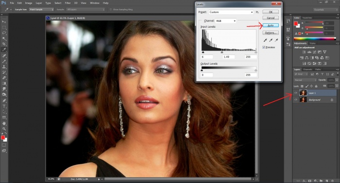 ২. খেয়াল করুন ছবিটাতে লাইট একটু কম আছে, তাই নতুন লেয়ারটি সিলেক্ট করে ctrl + L- চাপুন, ফলে লেভেলস-এর প্যানেল আসবে, তাতে অটো বলে লেখাটাতে ক্লীক করলেই দেখবেন লাইটের এডজাস্টমেন্ট ঠিক হয়ে যাবে, যদি মনে হয় সঠিক হোলনা তাহলে ম্যানুয়ালী স্লাইডারগুলি এদিক-ওদিক করে লাইট কম-বেশী করুন এবং ওকে করুন I (নীচের ছবিটা দেখুন) I