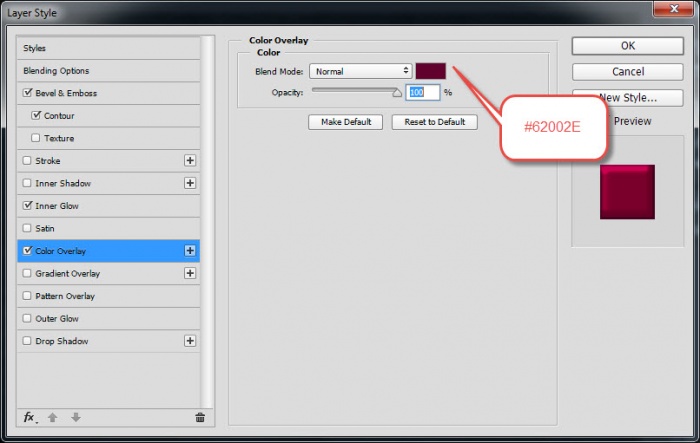 Select Color Overlay যা চিত্রের অনুযায়ী বসান