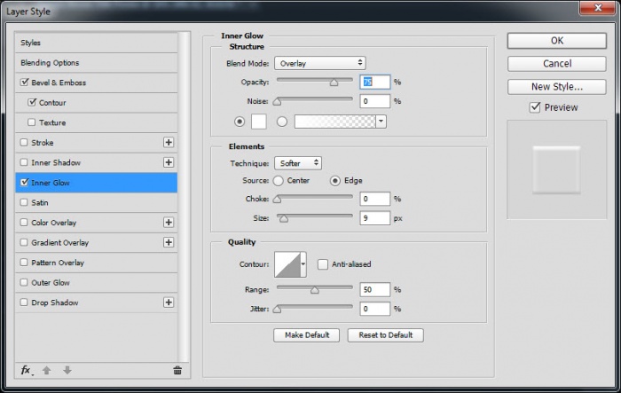 Select Innar Glow যা চিত্রের অনুযায়ী বসান