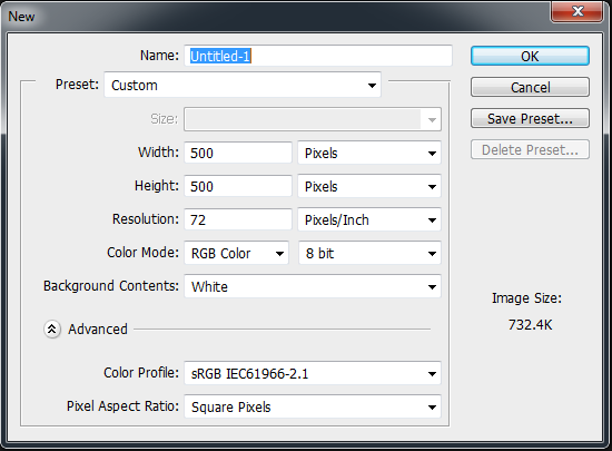 এখন ফটোশপ ওপেন করে 500px X 500px এর একটা ক্যানভাস নিতে হবে।