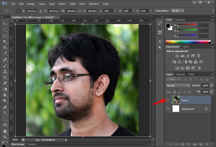 এখন প্রোফাইল পিকচারটি নতুন একটা লেয়ারে নিয়ে Ctrl+t প্রেস করে রিসাইজ করে নিতে হবে।