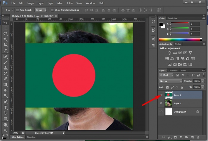 এখন পতাকার ইমেজটি নতুন একটা লেয়ারে নিতে হবে এবং Move tool দিয়ে পজিশন করে নিতে হবে।