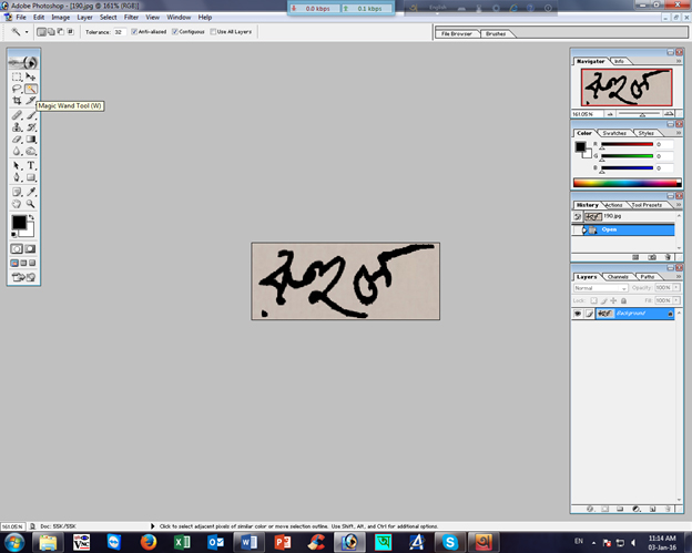 আসসালামুআলাইকুম বন্ধুরা আপনারা সবাই কেমন আছেন নতুন ইংরেজি বছরে আপনাদের জন্য আমি একটি নতুন tune নিয়ে আসলাম।এটা আমার সেকেন্ড tune।আজ আপনাদেরকে আমি দেখাবো কি ভাবে ফটোশপ দিয়ে একটা চিকন সিগনেচার কে সহজে বোল্ড করে সুন্দর করা যাই।এই কাজটি করার জন্য অবশ্যেই আপনার Computer এ Adobe Photoshop Install থাকতে হবে। আমি চেষ্টা করব আপনাদেরকে স্ক্রীন শর্ট দেখানোর জন্য।এই কাজটি করার জন্য আপনাকে প্রথমে Adobe Photoshop চালু করতে হবে এবং যে Signature or Line Bold করতে চান সেটা চালু করুন।তারপর মাজিক অয়ান্ড টুল এ ক্লিক করুন অথবা কীবোর্ড থেকে W চাপুন।