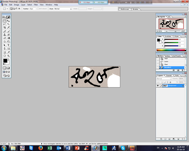 এরপর যে Signature এর উপর আপনি কাজ করতে চাসছেন সেটার উপর মাউস দিয়ে ক্লিক করুন এবং কীবোর্ড থেকে Delete টিপুন।দেখবেন আস্তে আস্তে পিছনের সাইডের কালার মুছে জাসছে ঠিক এ রকম।