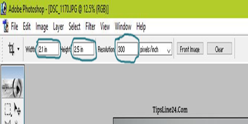 এবার ফটোশপের ক্রপ টুল সিলেক্ট থাকা অবস্থায় নিচের ছবির মত করে মান দিন উইড দিন ২.১ইঞ্চি এবং হাইট দিন ২.৫ ইঞ্চি নিচের ছবিতে যেভাবে দেয়া আছে সেভাবেই দিবেন। আর রেজুলেশন দিন ৩০০।