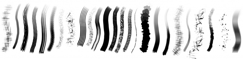 জোনাস স্টল্টজ ৩০ টি ব্রাস নিয়ে এই ফটোশপ সেট তৈরি করেছেন। খুবই সহজভাবে সাদা বোর্ডে রং এর ছিটা ফেলে সেটা আবার হাই রেজুলেশনে স্ক্যান করে তিনি এই ব্রাস সেট তৈরি করেছেন।
