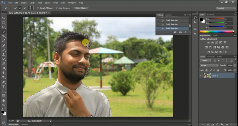 ২। তারপর যেকোন Selection Tool ব্যবহার করে ছবির যে অংশটা আপনি Photographic Logo এর জন্য ব্যবহার করবেন তা Select নিন। আমি Quick Selection Tool টা ব্যবহার করেছি।