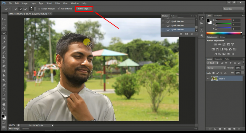 ৩। তারপর Refine Edge এ ক্লিক করুন।