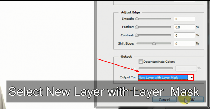 ৪। Refine Edge এ ক্লিক করার পর এই Window টা পাবেন। তারপর New Layer with Layer Mask অপশন টি Select করুন।