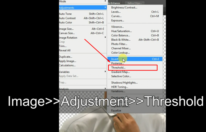 ৫। তারপর মেনুবার থেকে Image>>Adjustment>>Threshold Select করুন।
