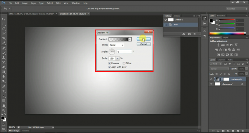 ৮। এইবার নতুন একটি New Background নিয়ে Gradient Fill এ গিয়ে নিচের মত Select করুন।