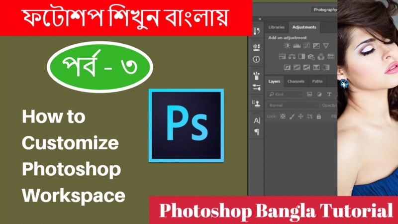 আজকে ফটোশপ বাংলা টিউটোরিয়ালের ৩য় পর্ব। আজকের টিউটোরিয়ালে আমরা ফটোশোপের Workspace কিভাবে কাস্টমাইজ করে নিজের মত সাজিয়ে নেওয়া যায় সেই বিষয়ে আলোচনা করব।
