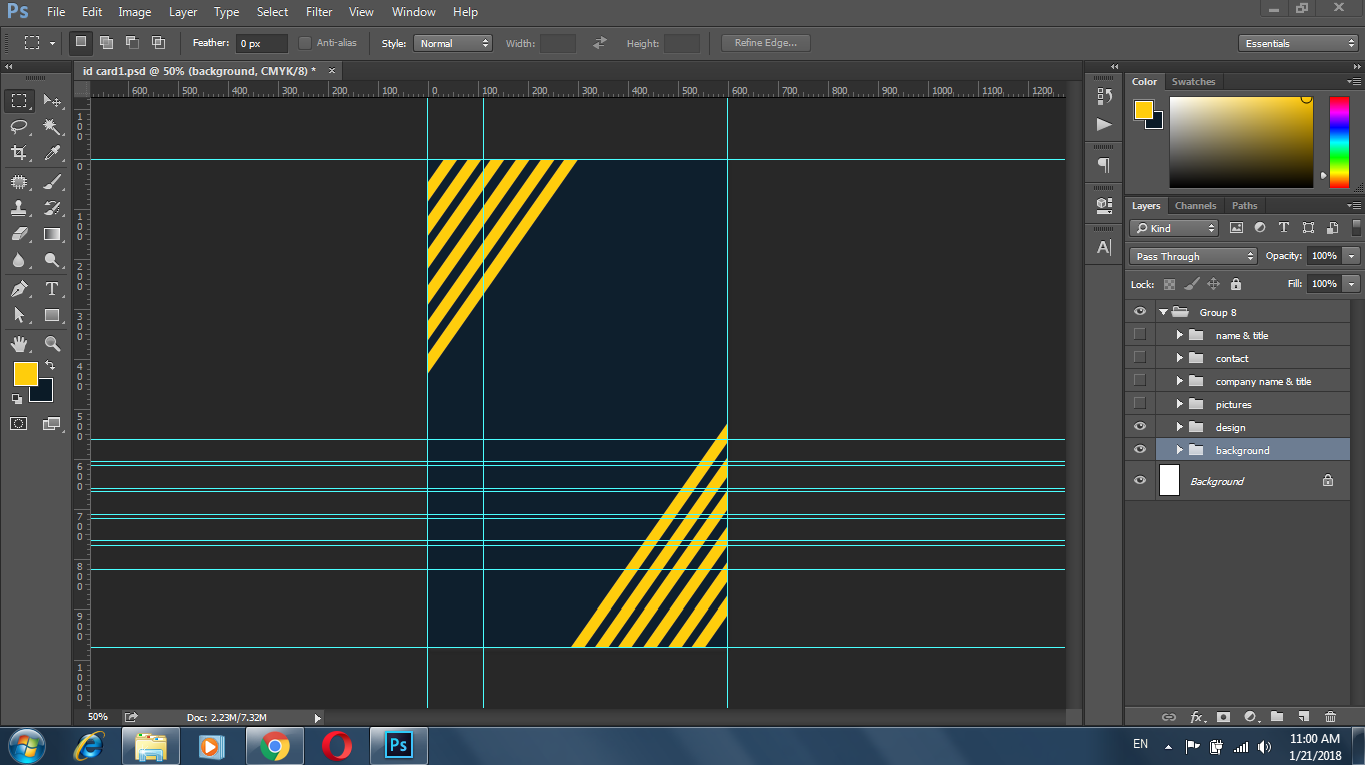 একটি ব্যাকগ্রাউন্ড কালার নেয় যার কোড 0b1b27 এবং ৬টি সেইপ নেয় হুলুদ কালারের যার কোড ffce0c এবং ৪৫ ডিগ্রি আঙ্গেলে।