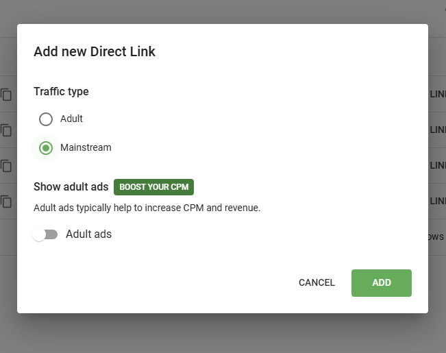 Mainstream or adult যেকেনো লিংক generate করে ১ /৩ মিনিট অপেক্ষা করুন। Browser refresh করুন দেখবেন link generate হয়ে গেছে।