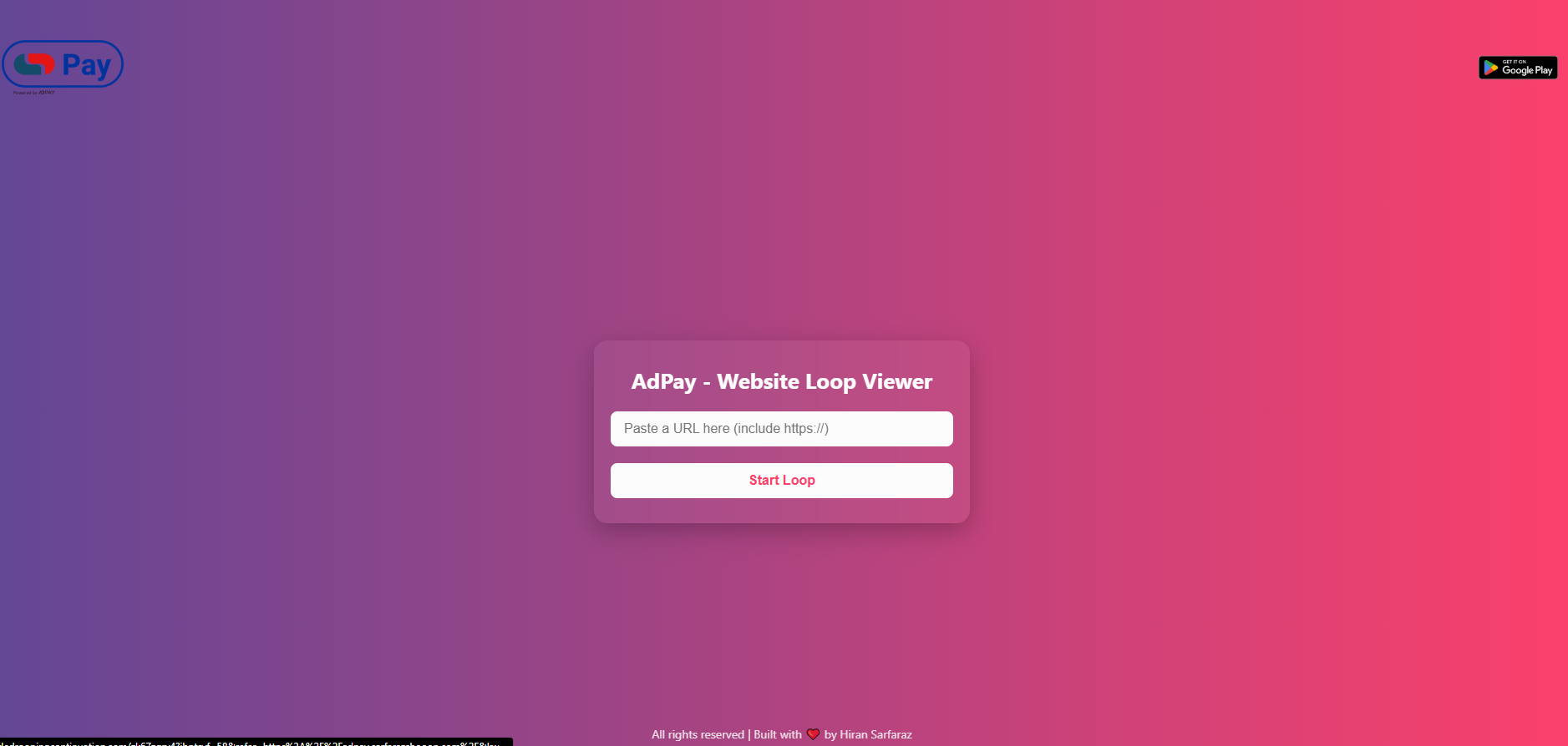 এখন Adsterra থেকে copy করা link এখানে paste করে Start Loop এ click করুন।