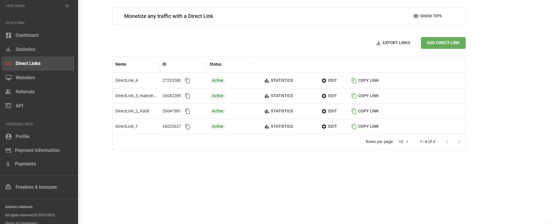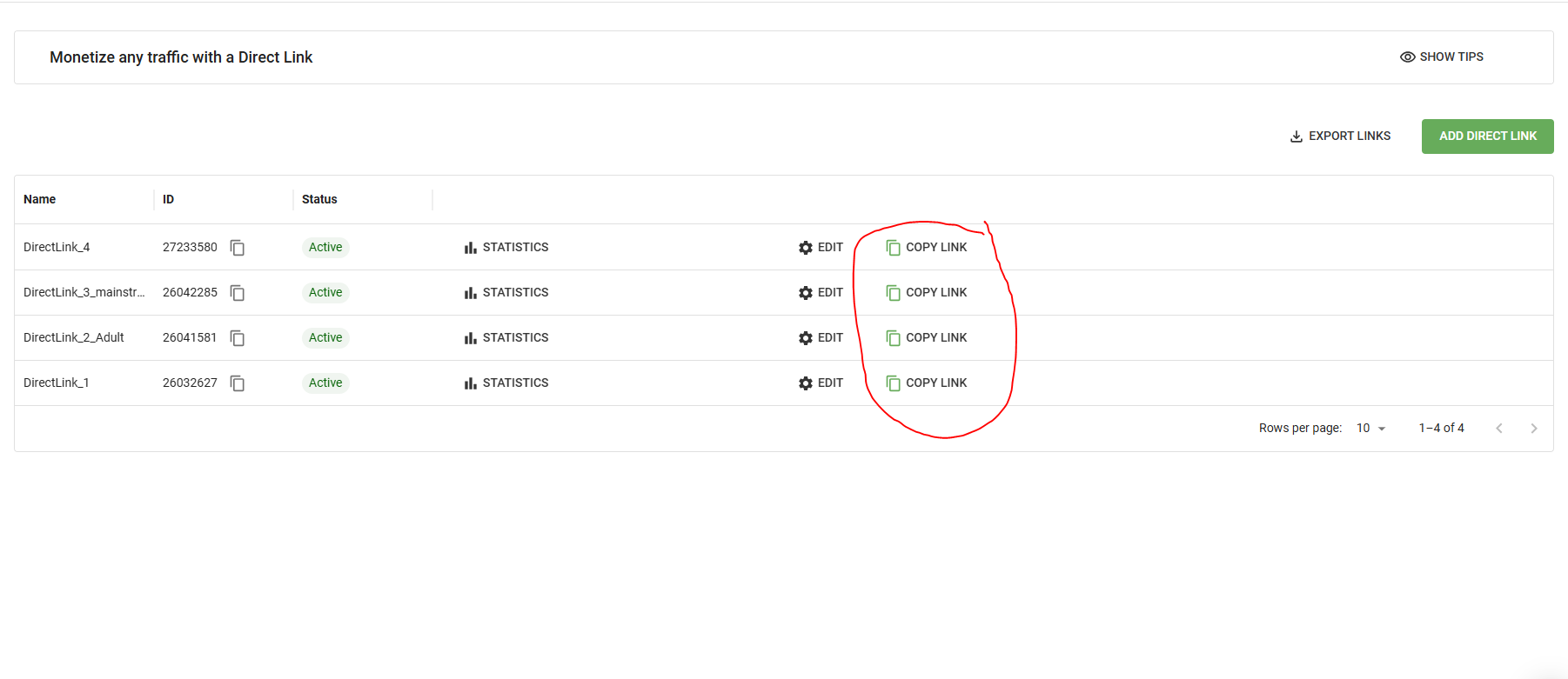 then Direct links এ গিয়ে ADD DIRECT LINK এ click করুন।