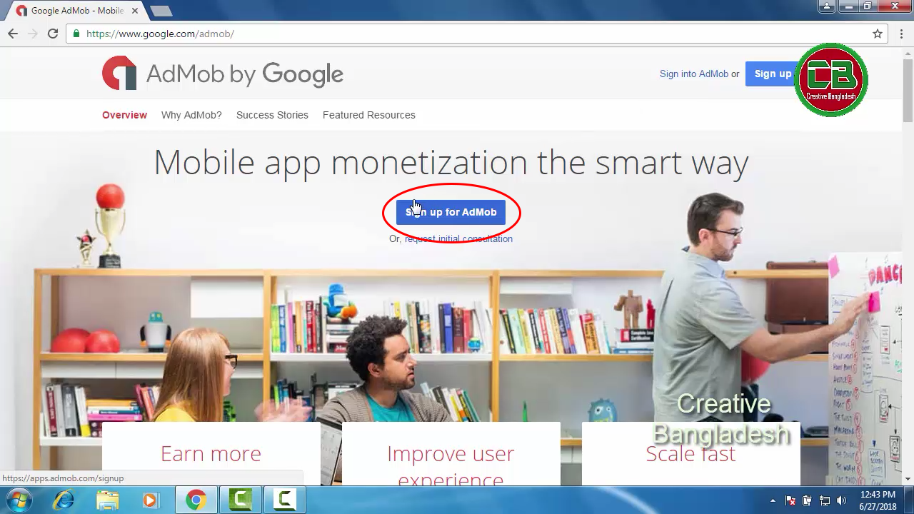 হাই বন্ধুরা, কেমন আছেন সবাই। আশা করি ভাল আছেন। আজকের টিউটোরিয়ালে দেখাবো যে কিভাবে আপনি একটি অ্যাডমোব একাউন্ট খুলবেন এবং পাশাপাশি একটি এডসেন্স একাউন্ট কিভাবে খুলবেন সেটি দেখাবো আজকে। এবং কিভাবে admob এর ad unite তৈরি করবেন সেটিও দেখাবো। তো অ্যাডমোব একাউন্ট খোলার জন্য আপনাকে প্রথমে নিচের লিঙ্কে ক্লিক করতে হবে।