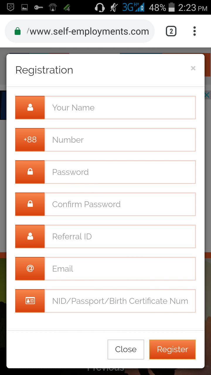 এখানে আপনাদের নাম নাম্বার পাসওয়ার্ড রেফারাল id- 130805 ইমাইল আর আপনার জেকন এক্তি nid thakle nid r birth cirtifikate number dite হবে.
