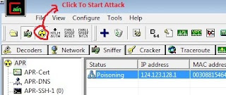৬। আইপি নির্বাচন এর পর আমাদের poisoning শুরু করতে হবে। এর জন্য উপরে হলুদ রঙ এর আইকন দেখতে পাবেন । সেখানে ক্লিক করুন । এখন ঐ আইপি মানে ঐ ইন্টারনেট কানেকশান যতক্ষণ একটিভ থাকবে আপনি সব ধরনের ইনফরমেশন পাবেন । যেমন টেলনেট সেসন , মেইল , ব্রাউযার এর সেভ পাসওয়ার্ড এসব । আপনি মেইল পাসওয়ার্ড পাবেন (কিন্তু ssl protected থাকলে সেগুলো পাবেন না ) , এমনকি সে কোন ওয়েবসাইট ভিসিট করে তাও যানতে পারবেন