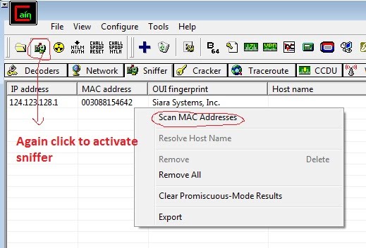 লক্ষ্য করুন এখানে সবথেকে বেশি গুরুত্ত পাবে cain স্নিফার টুল । আশা করি আমার দেয়া এই মেথড আপনি কোন খারাপ উদ্দেশে ব্যবহার করবেন না । সুধু নেটওয়ার্ক এর কোন বাগ ঠিক করা বা ম্যানেজমেন্ট এর কাজে ব্যবহার করবেন ।